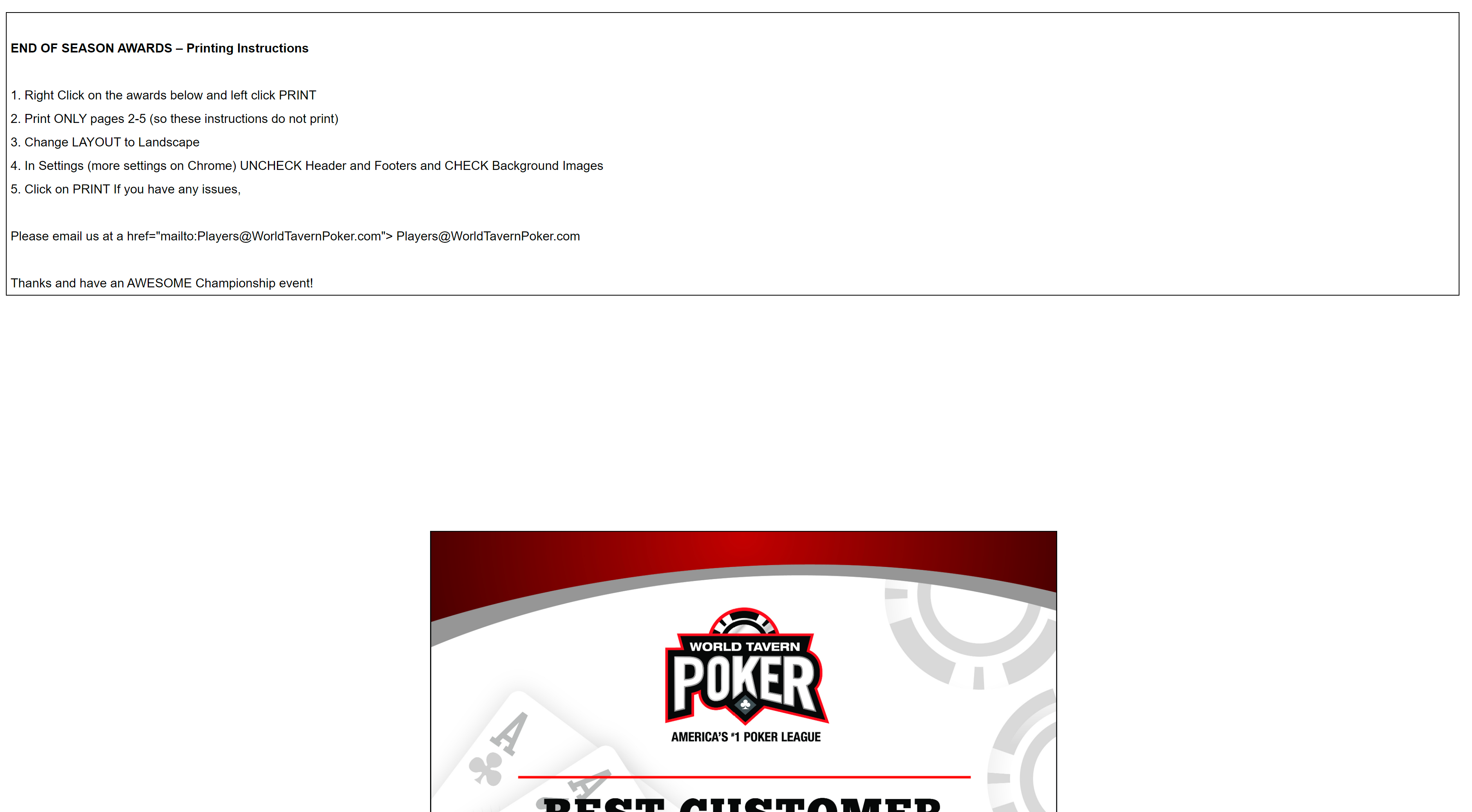 The easiest way for TDs to find and print the auto-generated End of Season Awards given for various accomplishments at their bar is to follow these easy steps below.